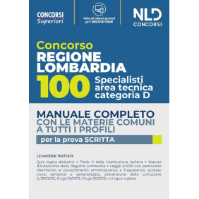 Concorso per 100 posti specialisti area tecnica Cat. D Regione Lombardia. Manuale completo con le materie comuni a tutti i profi Prezzo 32,00 €