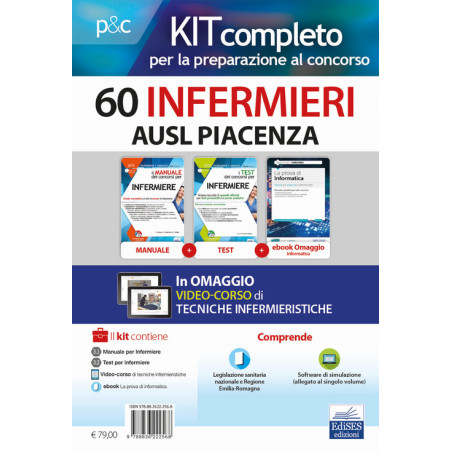 Kit concorso 60 Infermieri AUSL Piacenza. Volumi completi per la preparazione a tutte le prove concorsuali. Con ebook. Con softw Prezzo 79,00 €