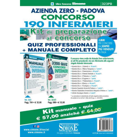 Azienda Zero Padova. Concorso 190 infermieri. Kit di preparazione al concorso. Quiz professionali + Manuale completo. Con espans Prezzo 57,00 €