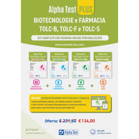 Alpha Test PLUS Biotecnologie e Farmacia TOLC-B, TOLC-F e TOLC-S. Kit completo di preparazione con training on line. Nuova ediz. Prezzo 134,00 €