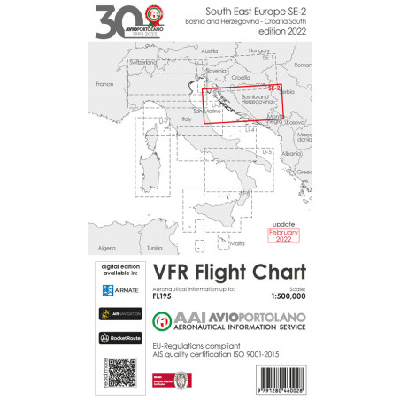 Avioportolano. VFR flight chart SE 2. South East Europe. Croatia south, Bosnia and Herzegovina. ICAO annex 4 - EU-Regulations co Prezzo 19,50 €