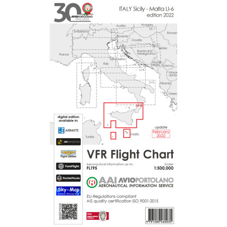Avioportolano. VFR flight chart LI 6 Italy Sicily. ICAO annex 4 - EU-Regulations compliant. Ediz. italiana e inglese Prezzo 19,50 €