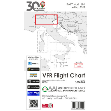 Avioportolano. VFR flight chart LI 1 Italy north. ICAO annex 4 - EU-Regulations compliant. Ediz. italiana e inglese Prezzo 19,50 €