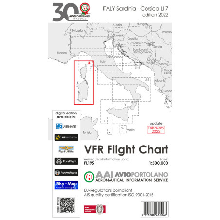 Avioportolano. VFR flight chart LI 7 Italy Sardinia-Corsica. ICAO annex 4 - EU-Regulations compliant. Ediz. italiana e inglese Prezzo 19,50 €