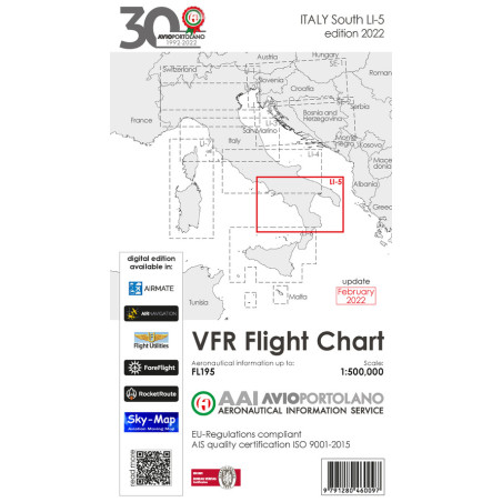 Avioportolano. VFR flight chart LI 5 Italy south. ICAO annex 4 - EU-Regulations compliant. Ediz. italiana e inglese Prezzo 19,50 €
