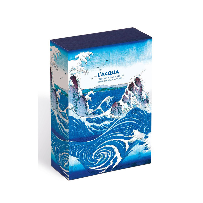 Onde impetuose, scrosci improvvisi, nevicate silenziose e dolci piogge leggere... l'acqua scorre in tutte le sue forme negli oltre settanta capolavori raccolti in questo cofanetto, presentati in formato a leporello e accompagnati da un libretto esplicativo. Il virtuosismo senza tempo di maestri come Hokusai, Hiroshige, Utamaro e Kuniyoshi si rivela in raffinati giochi di linee, tratteggi e colori, volti a sublimare la comunione dell'uomo con una natura pervasa di spiritualità.