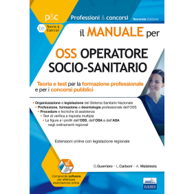 Frutto dell'esperienza maturata dall'autore nella selezione di personale infermieristico e sanitario, questo manuale costituisce un efficace e completo strumento di preparazione per quanti si apprestano a frequentare un corso di formazione per OSS o a sostenere un concorso pubblico per Operatore Socio Sanitario. Gli argomenti, trattati in maniera chiara ed esaustiva, rispecchiano le indicazioni contenute nei programmi d'esame dei concorsi banditi dalle Aziende ospedaliere e dalle ASL. Il volume, interamente a colori, è suddiviso in cinque parti: la prima parte contiene le norme sulla professione, sui concorsi pubblici, sul rapporto di lavoro del personale sanitario, sulla responsabilità giuridica degli operatori sanitari; la seconda parte fornisce nozioni di psicologia, sociologia e sistemi sociali; la terza parte riporta nozioni di igiene e sicurezza; la quarta parte, dedicata alla Assistenza alla persona, è invece finalizzata alla preparazione della prova pratica e presenta le principali procedure operative connesse all'esercizio della professione di OSS; la quinta parte è dedicata all'Anatomia e fisiologia dell'uomo con i principali apparati e sistemi del corpo umano. Al termine di ciascuna parte, numerosi quesiti di varie tipologie con soluzioni e commenti permettono di verificare le conoscenze acquisite e di esercitarsi in vista delle prove concorsuali di selezione.