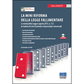La cosiddetta Mini riforma fallimentare - attuata con il D.L. 27 giugno 2015, n. 83, convertito nella Legge 6 agosto 2015, n.132 - ha nuovamente innovato la disciplina delle procedure concorsuali diverse dal fallimento, perseguendo due scopi. Il legislatore, da una parte, oltre ad aprire al mercato della concorrenza le vendite giudiziarie, ha posto un freno ai concordati preventivi incentrati sulla liquidazione totale dell'azienda decotta con previsioni di pagamento che da modeste diventavano, alla chiusura della procedura, spesso irrisorie, fissando almeno al 20% la percentuale che l'imprenditore deve assicurare ai chirografari. Dall'altra parte, ha agevolato il tentativo di continuazione dell'impresa in crisi con misure di finanza interinale, esperibili anche quando l'accordo di ristrutturazione o il concordato preventivo sono in attesa di una programmazione definitiva o quando il 25% delle banche non è disposto a concedere una moratoria nei pagamenti. Il messaggio da diffondere è quindi quello di una maggiore accessibilità al salvataggio dell'impresa ancora valida. Il Reparto di consulenza giudiziaria dello Studio Verna società professionale presenta - in attesa delle pronunce della giurisprudenza - un primo commento alla novella, arricchito da 30 schemi e moduli operativi per la redazione delle domande rese possibili dalle modifiche legislative, replicati sull'allegato Cd-Rom per la personalizzazione e la stampa.