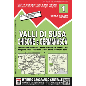 Carta n. 1 Val di Susa, Chisone e Germanasca 1:50.000. Carta dei sentieri e dei rifugi