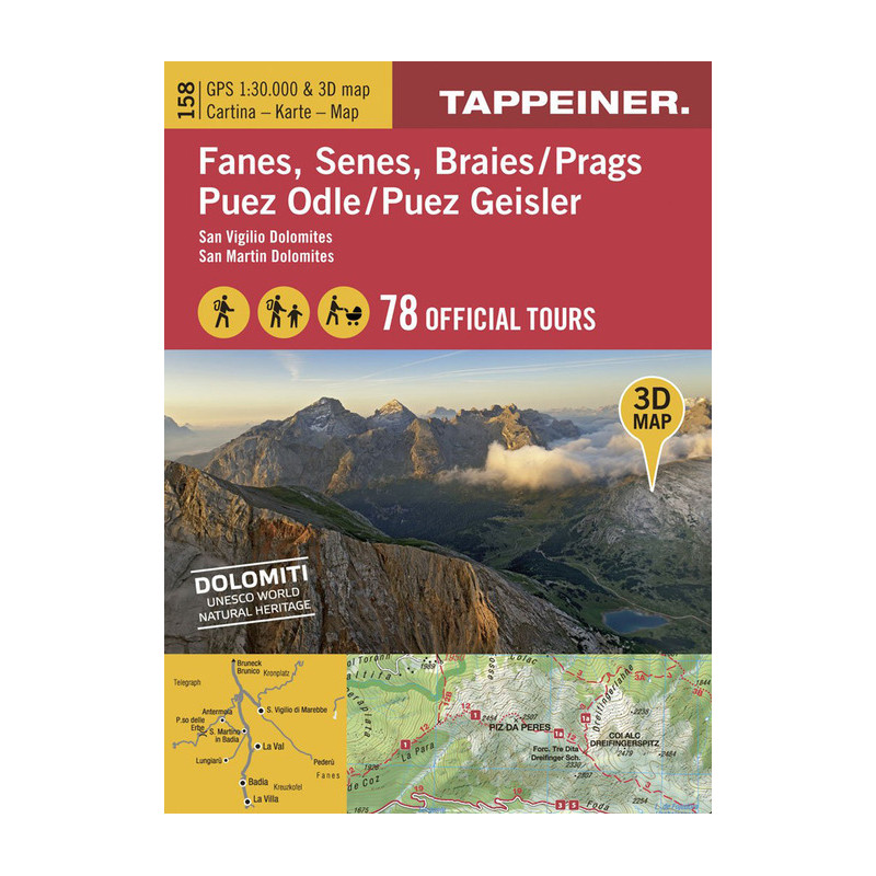 Fanes, Senes, Braies, Puez Odle. Carta escursionistica 3D