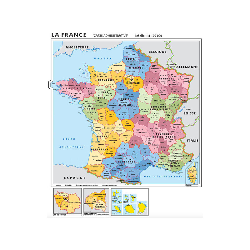 Francia 1:1.100.000. Carta murale scolastica fisico/politica con aste. Ediz. per la scuola