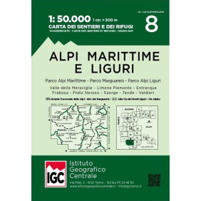 Carta n. 8 Alpi Marittime e Liguri 1:50.000. Carta dei sentieri e dei rifugi