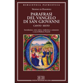 Poeta tardoantico del V secolo, nativo di Panopoli, Nonno ha composto il più lungo poema mitologico di tutta la letteratura greca, le Dionisiache e, sul versante cristiano, con la Parafrasi ha scelto di tradurre nella sublime musica di eleganti esametri il Vangelo secondo Giovanni, il più consono ad attuare un maggiore richiamo alla filosofia classica e neoplatonica. Mosso dall'intento di realizzare una poesia valida dal punto di vista teologico, un commentario sui generis al quarto vangelo capace di dialogare con un pubblico cristiano, ma anche pagano, poco incline allo stile umile delle Scritture, il poeta di Panopoli recupera il bagaglio espressivo della cultura classica, unita al fascino per la divinità di Cristo. Frutto di una nuova complessiva riconsiderazione della tradizione manoscritta, il testo preso in esame è il Canto sesto della Parafrasi, che presenta l'episodio del miracolo dei pani, la traversata di Cristo sulle acque, il discorso di Cafarnao e la confessione di fede di Pietro. Riproponendo queste tematiche nel raffinato intreccio del codice biblico e di quello epico, Nonno intraprende il difficile lavoro parafrastico anche con il proposito di armonizzare alcuni di quegli aspetti che possono condurre a una sovrapposizione tra paganesimo e cristianesimo, sollecitando il lettore dotto al riconoscimento della portata allusiva insita nei suoi versi. Ecco allora che la figura di Cristo, cantata con i toni dell'epica eroica, può richiamare per certi aspetti Dioniso, Iside o Serapide.