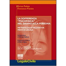 Nella presente pubblicazione gli autori descrivono una metodologia di valutazione della sofferenza psicofisica intrinseca conseguente a lesione personale. L'introduzione di natura giuridica a cura del prof. Giorgio Gallone (professore di medicina assicurativa presso l'Università "La Sapienza" di Roma) ed il commento sui presupposti di diritto della sofferenza psicofisica come danno giuridico di Marco Bona, illustrano gli elementi che connotano la necessità di attenzione all'entità della sofferenza psicofisica nell'apprezzamento del danno alla persona, nell'ottica della persistente rilevanza della componente di sofferenza morale nel risarcimento del danno non patrimoniale. Gli autori illustrano una metodologia di valutazione medico-legale della sofferenza psicofisica intrinseca al danno alla persona attraverso parametri di riferimento qualitativi e quantitativi finalizzati a fornire all'operatore del diritto una gradazione motivata, a parere degli autori, indispensabile per una equilibrata successiva quantificazione in via equitativa connessa al danno morale. Vengono con ciò forniti i parametri tecnici per tale valutazione, discussi, approfonditi e condivisi nel contesto della Società Medico-Legale del Triveneto. La pubblicazione riporta quindi i dati emersi da un'indagine statistica sull'applicazione pratica della metodologia nel Veneto, elaborata sulla base di circa 8 mila casi di valutazione della sofferenza psicofisica da parte di numerosi specialisti.
