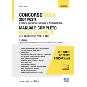 Il manuale è uno strumento per prepararsi al meglio a tutte le prove del Concorso per Direttore dei Servizi Generali e Amministrativi (DSGA). Chi aspira a svolgere la funzione di Direttore dei Servizi Generali e Amministrativi deve acquisire una formazione a 360 gradi per gestire a livello amministrativo e contabile le istituzioni scolastiche, con una conoscenza delle organizzazioni complesse e delle competenze essenziali, vale a dire: Diritto costituzionale e diritto amministrativo con riferimento al diritto dell'U.E.; Diritto civile; Contabilità pubblica con particolare riferimento alla gestione amministrativo-contabile delle istituzioni scolastiche; Diritto del lavoro e pubblico impiego contrattualizzato; Legislazione scolastica; Ordinamento e gestione amministrativa delle scuole e stato giuridico del personale scolastico; Diritto penale (delitti contro la P.A.); Comunicazione interpersonale e informatico-digitale; Conoscenza di lingua straniera. L'edizione del testo è aggiornata al decreto 28 agosto 2018, n. 129 (Nuovo regolamento di contabilità delle istituzioni scolastiche). Nell'ultima parte del testo è riportata un'Appendice normativa.