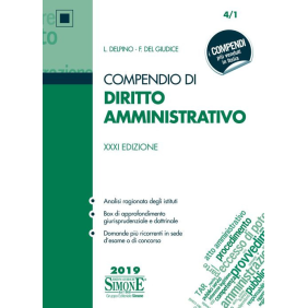 Il Compendio di Diritto Amministrativo, giunto alla XXXI edizione, concilia la disamina degli istituti fondamentali della materia, che rappresentano gli snodi essenziali per una buona preparazione, con un aggiornamento rigoroso alle innovazioni normative e giurisprudenziali. Il testo, infatti, tiene conto delle principali trasformazioni del diritto amministrativo, tra cui la regolamentazione dei contratti pubblici e del pubblico impiego, l'orientamento alla semplificazione e alla digitalizzazione, i temi "trasversali" dell'anticorruzione e della trasparenza, la privacy alla luce del mutato panorama normativo, europeo e nazionale, ed è inoltre aggiornato alle prospettive di riforma legate alla legge delega per il miglioramento della P.A. (cd. legge Bongiorno 2019). In linea con la collaudata sistematica espositiva Simone, che si avvale di differenti corpi di stampa, uso sapiente del neretto e del corsivo, questionari di riepilogo a conclusione di ogni capitolo, il volume soddisfa le esigenze degli studenti universitari, costituendo al contempo un valido sussidio per i partecipanti ai concorsi pubblici e per gli operatori del settore.