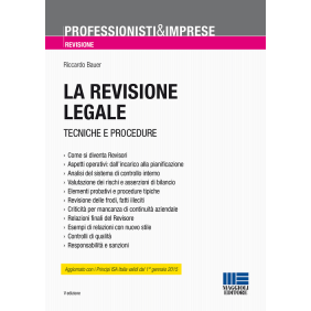 Il volume fa il punto della nuova situazione in cui gli operatori che svolgono funzioni di organo di controllo nelle società si trovano ad operare. Nel testo si esaminano le modalità di accesso alla figura professionale del revisore legale dei conti e le diverse fasi in cui si svolge la sua attività: dal conferimento dell'incarico alla redazione della relazione. Di particolare interesse è il capitolo dedicato alle procedure operative di controllo contabile, ricco di frequenti riferimenti ai principi di revisione e alle raccomandazioni e comunicazioni della Consob. I nuovi Principi di revisione ISA Italia, aventi effetto dal 1° gennaio 2015, costituiscono parte integrante del Manuale. In particolare, sono stati approfonditi gli aspetti relativi al Principio di revisione 250B, dedicato alle verifiche della regolare tenuta della contabilità sociale e al Principio 700, sulle nuove forme della Relazione finale di revisione. L'autore analizza, tra l'altro, gli aspetti della documentazione necessaria al controllo, della valutazione del rischio, in generale e soprattutto nella verifica delle parti correlate. Particolarmente importanti sono i capitoli 16 e 17 che prendono in considerazione diversi esempi sulla redazione della relazione finale del bilancio: dopo un esame degli elementi probativi, il testo si sofferma sull'importanza della significatività e della rilevanza degli errori in bilancio e sui loro effetti sulle diverse tipologie di giudizio.