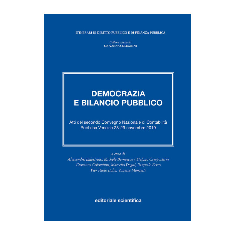 Il volume raccoglie gli atti del secondo Convegno nazionale di contabilità pubblica, frutto dell'accordo, sottoscritto nel 2018, tra il dipartimento di Economia dell'Università Ca' Foscari e il dipartimento di Scienze politiche dell'Università di Pisa.Il convegno ha affrontato il tema: "Democrazia e bilancio pubblico" con relatori italiani e stranieri, provenienti da molte Università e dalle istituzioni interessate al governo e al controllo della finanza pubblica (Banca d'Italia, MEF, Corte dei conti, Eurostat).La riflessione ha affrontato il nodo del ruolo del Parlamento nella decisione di bilancio, alla luce della sessione per il 2019 (e dell'ordinanza 17/2019 della Corte costituzionale), mettendo a fuoco le questioni legate al segmento parlamentare (prassi, regolamenti, relazione tra collegio specializzato e commissioni, ruolo dell'assemblea, statuto dell'opposizione) e ai rimedi necessari per evitare il rischio della emarginazione delle Assemblee elettive dalla definizione del bene pubblico bilancio.