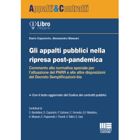 Il volume intende approfondire, grazie ai contributi di autorevoli ed apprezzati esperti, le numerose e dirompenti novità introdotte nella materia dei contratti pubblici dal D.L. 77/2021 conv. in L. 108/2021 (Decreto "Recovery" o "Semplificazioni-bis"): dalla proroga del "regime transitorio" fino al 30.6.2023, alla nuova disciplina del subappalto; dalle norme speciali per i contratti PNRR-PNC (sia in fase di affidamento che di esecuzione), alle modifiche alle procedure sotto soglia; dalla nuova disciplina del Collegio consultivo tecnico alle numerose innovazioni al D.Lgs. 50/2016. Tiene inoltre conto del Decreto "Infrastrutture". Numerose e inedite sono le questioni che si pongono agli operatori del settore nella nuova impostazione delineata dal PNRR, ove assume preminente valore "l'interesse nazionale alla sollecita e puntuale realizzazione degli interventi inclusi nei Piani": - il problematico rapporto tra le clausole di stabilità occupazionale, da un lato, e quelle di parità di genere e ricambio generazionale, dall'altro; - la configurabilità di limiti eurounitariamente "sostenibili" al subappalto; - la declinazione operativa delle nuove procedure sotto soglia, con particolare riguardo all'affidamento diretto emergenziale nel rispetto dei principi generali del Codice. L'analisi delle nuove disposizioni è preceduta da un'introduzione che ricompone il complesso quadro normativo vigente. Completa il volume il testo aggiornato del Codice dei contratti pubblici.