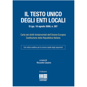 Il presente volume - strumento snello e di facile consultazione - raccoglie le norme imprescindibili per chi opera nel mondo degli Enti Locali. Oltre alla Carta dei diritti fondamentali dell'Unione Europea e alla Costituzione Italiana, l'opera contiene il Testo Unico degli Enti Locali, approvato con D.Lgs. 18 agosto 2000, n. 267, aggiornato ed annotato con tutte le modifiche ad oggi intervenute, e le principali disposizioni che, nel tempo, hanno completato il quadro normativo: la legge Delrio n. 56 del 2014 ed i decreti n. 235 del 2012 e n. 39 del 2013. Il libro è completato da un dettagliato indice analitico. Gli amministratori locali, i segretari comunali, i dirigenti e gli operatori che quotidianamente si trovano a dover consultare le principali disposizioni di riferimento lo troveranno indispensabile e di rapido utilizzo. È inoltre consigliato a tutti coloro che devono affrontare un concorso pubblico.