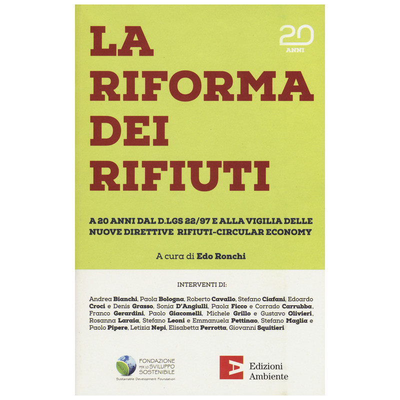Con il Decreto legislativo 5 febbraio 22 del 1997 in Italia si è realizzata una vasta riforma del sistema della gestione dei rifiuti, un tema che oggi è in procinto di vivere un importante anno di transizione, grazie all'avvio del nuovo pacchetto di direttive europee per lo sviluppo dell'economia circolare. In un contesto in così significativa mutazione "La riforma dei rifiuti" propone una riflessione sui venuti anni trascorsi e sulle prospettive future, con il contributo di un qualificato panel di esperti.