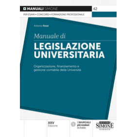Il Manuale di legislazione universitaria offre in maniera completa e mirata un'esposizione di tutti gli aspetti giuridici, gestionali e contabili della complessa macchina universitaria. In particolare, la trattazione si sviluppa tenendo ben presente l'evoluzione del dettato normativo inerente all'organizzazione, alla didattica e alla ricerca universitaria, al personale docente nonché a quello tecnico-amministrativo, alle fonti di finanziamento, all'attività contabile e contrattuale delle università e a quella di orientamento e di segreteria del sistema universitario. Questa nuova edizione Manuale di legislazione universitaria, inoltre, arricchita di un ulteriore capitolo concernente il sistema di trasparenza e anticorruzione nella P.A. e nell'Università, è aggiornata ai più recenti provvedimenti normativi in materia, tra cui: le varie modifiche che sono intervenute sulla L. 240/2010; alcune misure introdotte con la legge di bilancio 2022; molte disposizioni del D.L. 77 /2021 attuativo del Piano Nazionale di Ripresa e Resilienza (PNRR). Il libro, che rappresenta un aggiornato e valido supporto di preparazione e di conoscenza della complessa legislazione universitaria, è destinato a quanti devono affrontare esami e concorsi, come pure è utile per supportare la formazione professionale di coloro che già operano a vario titolo nella gestione delle università. Tutti i manuali Simone.