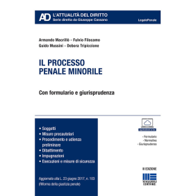Il volume, aggiornato alla L. 23 giugno 2017, n. 103 (Riforma della giustizia penale), è uno strumento di supporto per quanti chiamati a gestire le criticità legate al processo penale minorile. Con giurisprudenza e formulario, l'opera esamina infatti in maniera ragionata e compiuta l'intero procedimento penale minorile, partendo dai principi generali che lo regolano e dalle principali convenzioni internazionali, passando per la fase delle indagini preliminari fino al dibattimento, alle impugnazioni e all'esecuzione. Ciascun capitolo è completato con una rassegna di quesiti aventi come risposta le interpretazioni giurisprudenziali sull'argomento trattato. Notevole attenzione è dedicata innanzitutto ai soggetti: dal giudice al pubblico ministero, dall'imputato ai servizi minorili e agli esercenti la responsabilità genitoriale sino alla disamina della difesa e dell'assistenza tecnica del minore. La trattazione prosegue con l'analisi delle misure precautelari e cautelari, con ampio spazio dedicato alla scelta delle cautele da attuare e alla loro tipologia e durata. Apposita sezione è dedicata al tema, di grande attualità, dell'ascolto del minore e all'incidente probatorio, il cui utilizzo è stato rafforzato sin dalla ratifica della Convenzione di Lanzarote del 2012. Al volume sono collegate utili risorse on line.