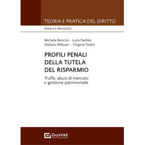 Negli ultimi due decenni il mondo del risparmio e dei mercati finanziari in genere sono stati caratterizzati dal costante ricorso al diritto penale. Dagli scandali finanziari del 2008 alle crisi bancarie del 2015 il diritto penale si è rivolto con sempre maggiore attenzione all'ambito bancario del risparmio e della tutela del mercato. Al contempo il d.lgs. 231/2001 e Banca d'Italia hanno rafforzato gli oneri di prevenzione in capo ai soggetti autorizzati alla raccolta del risparmio e all'emissione e collocamento di strumenti finanziari. L'opera affronta la tutela del risparmio sotto il duplice profilo penalistico e di compliance dapprima analizzando le fattispecie di reato più ricorrenti nell'ambito delle attività bancarie e finanziarie (truffa reati del consulente finanziario insider trading e manipolazione del mercato) quindi fornendo una panoramica dei criteri di attribuzione della responsabilità delle persone giuridiche della responsabilità degli enti e dell'apparato di organizzazione e prevenzione imposto dal d.lgs. 231/2001 o dalle Circolari di Banca d'Italia.