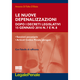 Il testo, con tabelle di raffronto tra normativa pre-vigente e vigente, illustra tutte le novità che sono intervenute in materia di reati depenalizzati. Con i Decreti Legislativi numeri 7 e 8 del 15 gennaio del 2016, si è intervenuti in materia penale depenalizzando diverse fattispecie di reato e al contempo abrogandone altre sostituendole con illeciti civili. Quindi sono stati abrogati alcuni articoli del codice penale come: 485, 486, 594, 627, 647. Altri sono stati soltanto modificati. Infine sono stati inseriti i nuovi illeciti sottoposti a sanzioni pecuniarie civili. Questo istituto riguarda tutti quei fatti per i quali, se dolosi, oltre all'obbligo della restituzione e risarcimento è prevista anche una sanzione pecuniaria civile.