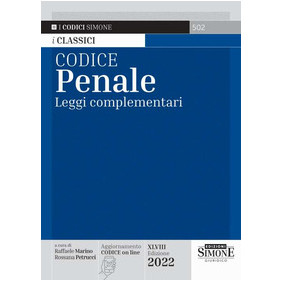 I Codici classici Simone, di cui il Codice Penale e leggi complementari fa parte, sono codici arricchiti da un utile corredo di note normative che permette un'immediata consultazione dell'articolato vigente e suggerisce originali collegamenti alla normativa speciale. Un'ampia e aggiornata selezione di norme speciali completa il lavoro. I Codici classici sono arricchiti da puntuali e dettagliati indici analitico-alfabetici per un immediato reperimento della norma ricercata. I Codici classici per i contenuti proposti rappresentano quindi un valido e aggiornato strumento di studio e/o lavoro per magistrati, avvocati, studenti universitari e partecipanti ai pubblici concorsi. Leggi complementari: Aborto, Adozione, Amnistia, Armi, Associazioni vietate, Crimine organizzato transnazionale, Depenalizzazione, Discriminazione razziale, etnica e religiosa, Divorzio, Documentazione falsa, Doping, Edilizia e urbanistica, Fallimento, Giuoco e scommesse, Indulto, Maltrattamento di animali, Ordine pubblico, Pedofilia, Privacy, Prostituzione, Reddito di cittadinanza, Responsabilità enti, Riciclaggio, Sequestro di persona ed estorsione, Società, Stalking, Stampa, Stranieri e apolidi, Stupefacenti, Terrorismo, Usura, Violazione delle sanzioni applicate dal giudice di pace, Violenza di genere.