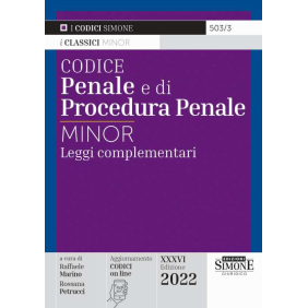 Questa nuova edizione del Codice Penale e di Procedura Penale Minor con leggi complementari si rivolge a quanti per motivi di studio o per motivi professionali (avvocati, magistrati, forze di polizia e operatori del diritto a vario titolo) abbiano la necessità di consultare dei codici aggiornati in un formato pratico e maneggevole. Il testo, corredato da una mirata selezione di normativa complementare (Archivio impronte genetiche (DNA); Armi; Collaboratori e testimoni di giustizia; Contrabbando; Cooperazione internazionale; Mafia; Mandato d'arresto europeo; Minori; Operazioni sotto copertura; Ordine pubblico; Passaporto; Polizia di Stato; Pubblica sicurezza; Reddito di cittadinanza; Riciclaggio; Rito penale e sospensione dei termini durante l'emergenza Covid-19; Stalking; Stranieri; Stupefacenti; Terrorismo) è stato integrato con le nuove disposizioni relative alla Sospensione dei termini durante l'emergenza Covid-19, offrendo così una panoramica completa ed aggiornata della più applicata normativa processual-penalistica. Un dettagliato indice analitico-alfabetico accanto ad un puntuale indice cronologico completa il volume consentendo un immediato reperimento della norma.