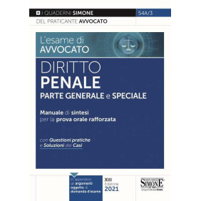 L'esame di Avvocato ha sempre costituito per le Edizioni Simone un tassello importante della sua produzione editoriale; testi mirati alla preparazione dei praticanti per affrontare al meglio le prove d'esame. Su questa scia si pone la collana I Quaderni del Praticante Avvocato che quest'anno è stata finalizzata alla preparazione del cd. orale rafforzato, a causa dell'emergenza da COVID-19, che ha sostituito le tradizionali prove scritte e orali dell'abilitazione forense. In particolare sono previste due prove orali: la prima prova orale riguarda la discussione di una questione teorico-pratica su una delle materie sostanziali a scelta del candidato tra diritto civile, penale e amministrativo. La questione da esaminare è sorteggiata tra tre ipotesi possibili. Durante l'esame del caso è possibile utilizzare codici commentati; la seconda prova orale riguarda la discussione di diverse materie: una tra diritto civile e penale (la materia scartata nella prima prova); una procedura a scelta (civile o penale); tre questioni tra diritto costituzionale, amministrativo, tributario, commerciale, lavoro, Unione europea, ecclesiastico, diritto internazionale privato. Viene, inoltre, accertata la conoscenza dell'ordinamento forense. Questo manuale di sintesi, quindi, è indirizzato proprio a coloro che devono prepararsi alle prove orali, per agevolarne e migliorarne la preparazione e consente, soprattutto a quanti sono in ritardo con lo studio, una lettura e un apprendimento rapido, privilegiando argomenti e istituti che più probabilmente possono costituire oggetto di domanda d'esame. L'esposizione della materia si può avvalere, inoltre, di rubriche quali «Differenze», «Giurisprudenza» e «Schemi riepilogativi». Completa il testo un glossario che individua i potenziali argomenti oggetto di domande d'esame.