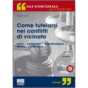 L'opera, con formulario e giurisprudenza, affronta le tematiche che diventano oggetto di litigi tra vicini di casa e che spesso sfociano in azioni giudiziarie per la loro risoluzione. I rapporti di vicinato sono i rapporti che intercorrono tra proprietari immobiliari confinanti ed hanno da sempre rappresentato la fonte di innumerevoli controversie. A tal fine, il legislatore ha dettato norme che prevedono limiti legali, identificati dal carattere preventivo, dall'applicabilità in ogni caso, indipendentemente dall'esistenza di un danno e dalla reciprocità del sacrificio o della limitazione, appunto imposta dalla legge. Non potevamo trattare dei rapporti di vicinato limitandoci alla struttura letterale sistematica del codice civile. La nostra analisi è passata, quindi, anche per le immissioni moleste e il condominio cercando di intervallare il commento partendo o arrivando a casi pratici. Nella struttura come primo elemento si trova la ratio che indica la fonte normativa delle questioni trattate, segue poi il commento sostanziale con riferimenti dottrinari e al diritto vivente. E poi ancora, la giurisprudenza che raccoglie una rassegna delle massime più interessanti e recenti riguardo agli aspetti giuridici coinvolti. Poi segue la mappa, infine troviamo la formula quale modello da personalizzare secondo le proprie esigenze (sul Cd-Rom allegato è presente l'intero formulario editabile e stampabile).