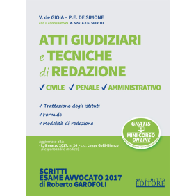 L'approccio all'esame di avvocato non può prescindere dall'approfondita conoscenza quantomeno dei principali istituti del processo, costituendo, ciò, la necessaria premessa per la risoluzione delle questioni con cui confrontarsi nel corso della prova scritta. Il volume intende far fronte proprio a questa esigenza. Gli autori guidano l'aspirante avvocato verso la conoscenza di processi (civile, penale e amministrativo) complicati dai continui interventi del legislatore: è il caso, ad es., della L. 8 marzo 2017, n. 24 - ed. Legge Gelli-Bianco (Responsabilità medica) che, entrata in vigore il 1° aprile 2017, ha introdotto l'art. 590-sex/es cod. pen. "Responsabilità colposa per morte o lesioni personali in ambito sanitario", imponendo all'aspirante avvocato un attento studio dell'incidente di esecuzione ex art. 673 cod. proc. pen. L'opera, sin dall'illustrazione delle tecniche generali per la redazione dell'atto giudiziario, denuncia una finalità decisamente didattica, come attestato dai modelli di atti maggiormente ricorrenti nella pratica professionale, tutti ampiamente esplicati al fine di una più agevole lettura. Degna di menzione, inoltre, è la presenza di numerosi schemi di sintesi che, evidenziando i punti salienti di ogni questione problematica, ne consentono una immediata comprensione ed una più facile memorizzazione; un ulteriore importante ausilio al lettore, infine, proviene dalla raccolta organica e ragionata dei provvedimenti resi dalla giurisprudenza con specifica indicazione, all'interno di ogni singola massima, del principio cardine.