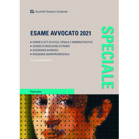Preparati al "nuovo esame" con lo Speciale Esame Avvocato 2021, a cura di Alberto Filippini. Come indicato nel D.L. n. 31 del 2021, la prima prova orale ha ad oggetto l'esame e la discussione di una questione pratico-applicativa, nella forma della soluzione di un caso, che postuli conoscenze di diritto sostanziale e di diritto processuale, in una materia scelta preventivamente dal candidato tra le seguenti: materia regolata dal codice civile; materia regolata dal codice penale; diritto amministrativo. Nello speciale troverai i contenuti adatti alla preparazione: utilizza le tracce dei pareri e degli atti svolti per individuare la questione giuridica, le disposizioni applicabili, i principi e gli orientamenti giurisprudenziali. Nel dettaglio troverai: Sezione civile: Parere civile svolto, parere civile esplicato, Atto civile svolto, schemi di redazione di pareri, il dizionario giuridico e una rassegna giurisprudenziale 2021; Sezione penale: Parere penale svolto, parere penale esplicato, atto penale, schemi di redazione di pareri, il dizionario giuridico e una rassegna giurisprudenziale 2021; Sezione amministrativo: Atto amministrativo svolto e una rassegna giurisprudenziale 2021.