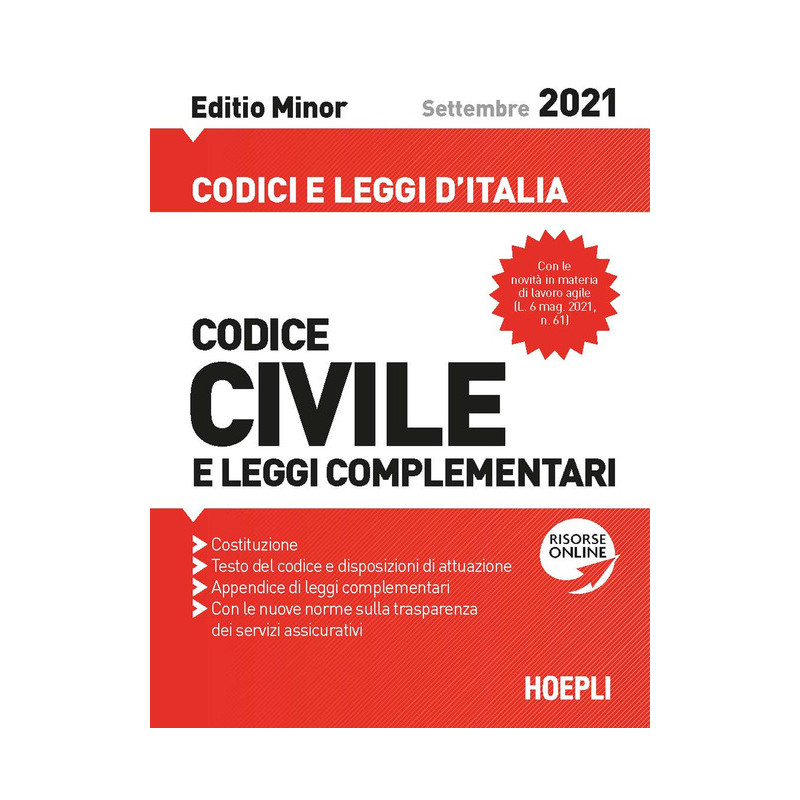 Codice civile e leggi complementari. Settembre 2021. Editio minor