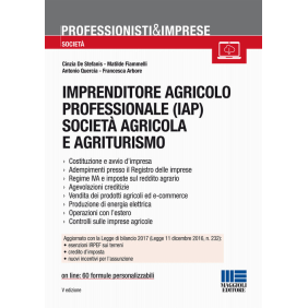 Il volume intende fare il punto ed analizzare il complesso delle attività produttive di reddito agrario - compresi agriturismo, vendita diretta e società agricole - esaminando gli aspetti civilistici, gli adempimenti amministrativi, la gestione pratica e la disciplina fiscale, che in questo settore è particolarmente intricata e spesso fonte di dubbi interpretativi. Online: 60 schemi di atti e formule personalizzabili. Questa edizione - che tiene conto delle più recenti sentenze, circolari e risoluzioni - è aggiornata con le ultime novità normative e fiscali di settore, tra cui si evidenziano le principali disposizioni introdotte dalla Legge di bilancio 2017 (Legge 11 dicembre 2016, n. 232): esenzioni IRPEF per il triennio 2017-2019 sui terreni, sia per il reddito dominicale che per il reddito agrario (con le precisazioni espresse dall'Agenzia delle Entrate in sede di TELEFISCO 2017); credito d'imposta per le strutture ricettive turistico-alberghiere, ora esteso anche a quelle che svolgono attività agrituristica; incentivi per l'assunzione di giovani in agricoltura (alternanza scuola lavoro, proroga degli incentivi per l'apprendistato, Bonus Occupazione Giovani, sgravi contributivi per l'assunzione nel Mezzogiorno).
