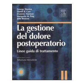Un adeguato ed efficace controllo del dolore in generale e del dolore postoperatorio in particolare può migliorare notevolmente la qualità di vita del paziente; tale consapevolezza ha incentivato la ricerca scientifica negli ultimi dieci anni. Questo volume, scritto da opinion leader nel campo del dolore acuto, descrive in modo chiaro ed esaustivo tutti gli aspetti della gestione del dolore postoperatorio, dalla farmacologia cllnica agli aspetti organizzativi. II volume è suddiviso in quattro sezioni: Pratica basata sull'evidenza, Basi scientifiche del dolore e dell'analgesia postoperatori, Gestione del dolore postoperatorio, Terapia del dolore postoperatorio in particolari situazioni cllniche. Tre capitoli sono dedicati al trattamento del dolore postoperatorio in neonati e bambini, negli anziani e nei pazienti tossicodipendenti. Box di approfondimento, tabelle, grafici e illustrazioni rendono il manuale di immediata e facile consultazione. Il CD-Rom in lingua inglese allegato al volume contiene 12 casi clinici che il lettore può commentare confrontando successivamente la sua opinione con quella degli autori e circa 300 test di autovalutazione.