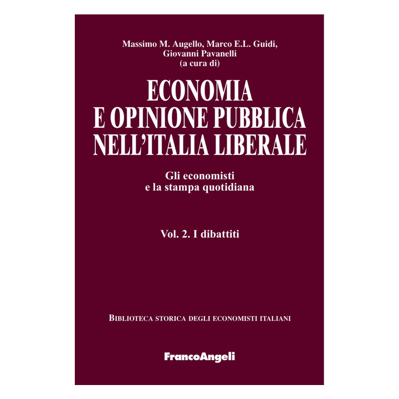Tra la fine dell'Ottocento e i primi decenni del Novecento la stampa quotidiana iniziò a svolgere anche in Italia una funzione cruciale di trasmissione e disseminazione di idee e giudizi di valore e fu strumento di sensibilizzazione e orientamento dell'opinione pubblica su specifiche proposte di riforma e misure di policy. Quest'opera raccoglie, in due volumi, i risultati di un ampio lavoro di ricerca diretto a ricostruire e analizzare approfonditamente questo fenomeno e, in particolare, l'attività di opinion makers svolta in età liberale dagli economisti italiani sui principali giornali nazionali. Il primo volume, dedicato ai maggiori cultori italiani di scienze economiche, contiene studi dedicati all'analisi complessiva del loro rispettivo contributo sulla stampa quotidiana. Oltre all'importante azione di alcune figure pionieristiche in queste attività - come Salvatore Cognetti de Martiis, Vilfredo Pareto, Maffeo Pantaleoni, Antonio de Viti de Marco - viene esaminata l'attività di studiosi della generazione più giovane quali Gino Borgatta, Attilio Cabiati, Edoardo Giretti, Federico Flora, e soprattutto del loro Maestro Luigi Einaudi che ha rappresentato un caso pressoché unico nel panorama nazionale. Il secondo volume, che ha invece un'impostazione tematica, raccoglie i saggi relativi ai principali interventi di politica economica e sociale pubblicati sulla stampa quotidiana, in particolare nel periodo compreso tra il 1890 e la presa del potere da parte del Fascismo.