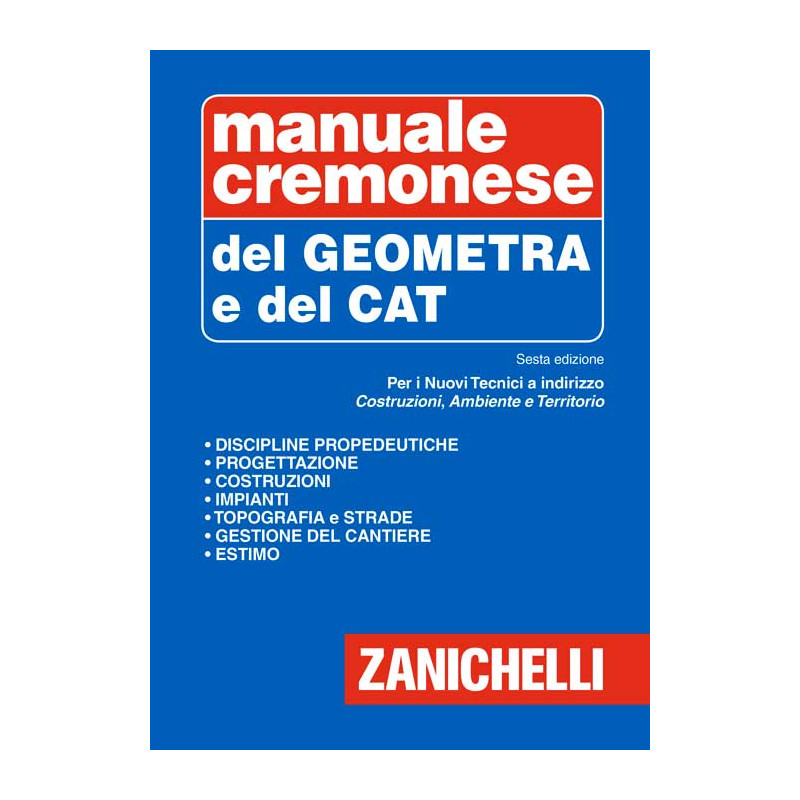 La sesta edizione del manuale Cremonese del Geometra e del CAT è stata rivista e aggiornata per rispondere alle esigenze didattiche dei Nuovi Istituti Tecnici, in particolare per l'indirizzo Costruzioni, Ambiente e Territorio. Un unico volume raccoglie le discipline propedeutiche e la trattazione specialistica. Si è ritenuto utile riproporre nelle linee essenziali le discipline propedeutiche, che affrontano argomenti che dovrebbero essere già acquisiti, per consentire sempre allo studente una loro agevole consultazione. Nella sezione specialistica si è privilegiata invece la componente disciplinare caratterizzante al fine di rendere questo strumento davvero utile per l'Esame di Stato, grazie anche al ricchissimo corredo di tavole, di disegni e riferimenti normativi. L'opera è perciò divisa in macrosezioni secondo le linee guida ministeriali, seguendo la progressione, scaturita dalla riforma, delle nuove materie scolastiche: si trovano quindi Progettazione, Costruzioni, Impianti, Topografia, Gestione del cantiere e strade, Estimo e Norme giuridiche. Fra gli aggiornamenti più importanti si segnalano l'inserimento della nuova normativa sul condominio, l'approfondimento sull'estimo civile e quello ambientale, nuovi capitoli tecnici come le costruzioni in legno e le prestazioni dell'involucro edilizio e una profonda revisione della parte di topografia.