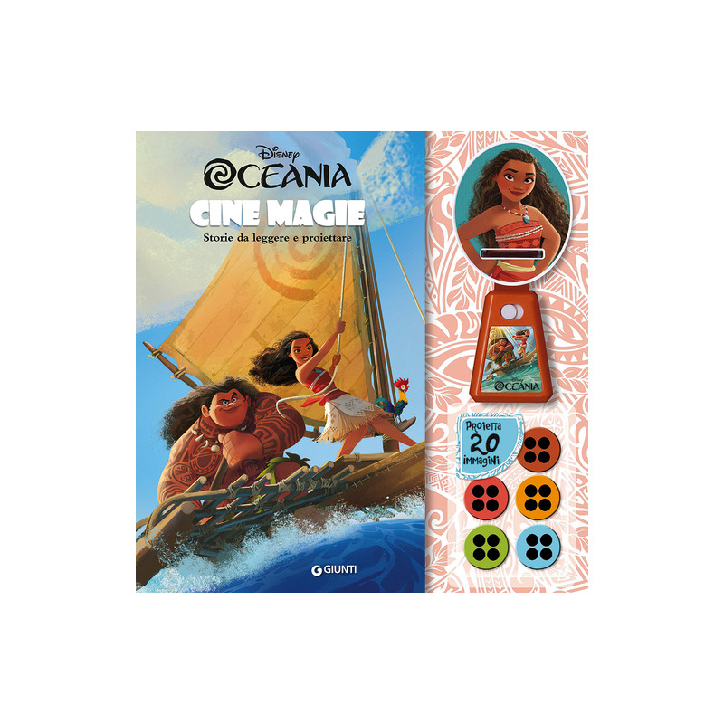 Un libro attivo illustrato, che racconta le avventure di Vaiana, Tui e Maui e di tutti i personaggi del nuovo film Disney Oceania. Mentre legge la storia, il piccolo lettore, grazie al proiettore allegato al libro, potrà divertirsi a proiettare sulla parete 20 immagini originali tratte dal film, contenute in 5 dischetti. In questo modo, sarà possibile rivivere le emozionanti avventure del film. Età di lettura: da 4 anni.