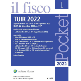 Il Pocket TUIR 2022 riporta il D.P.R. 22 dicembre 1986, n. 917, aggiornato con i provvedimenti pubblicati nella Gazzetta Ufficiale fino a gennaio 2022. Completa il pocket l'Appendice normativa contenente i seguenti provvedimenti: D.Lgs. 28 febbraio 2005, n. 38 (Principi contabili internazionali); D.Lgs. 14 marzo 2011, n. 23 (Cedolare secca sugli affitti); D.L. 6 dicembre 2011, n. 201 (ACE - Aiuto alla crescita economica); L. 23 dicembre 2014, n. 190 (Regime forfetario); D.L. 19 maggio 2020, n. 34 (Superbonus 110 per cento); L. 30 dicembre 2020 , n. 178 (Credito d'imposta beni strumentali). Il testo del D.P.R. n. 917/1986 e quello dei provvedimenti in nota o in Appendice tengono conto delle novità introdotte dalla Legge di Bilancio 2022 e dai provvedimenti successivamente emanati.