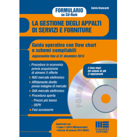 Il presente formulario fornisce, con taglio operativo, la principale modulistica necessaria per la gestione delle procedure d'acquisto di beni e servizi. Lo scopo del presente lavoro è quello di fornire all'operatore il quadro d'insieme della copiosa documentazione necessaria per espletare al meglio una procedura d'appalto. La raccolta di fac-simili comprende atti per la gestione di fasi procedimentali principali, ma anche di fasi eventuali o accessorie. La documentazione è suddivisa in 14 sezioni ciascuna delle quali riporta la principale modulistica necessaria per espletare la singola tipologia di procedura. Le sezioni dedicate alle procedure d'appalto prevedono una preliminare illustrazione delle principali fasi mediante flow chart che evidenzia in forma cronologica gli adempimenti più salienti che si rendono necessari per giungere in modo corretto all'affidamento dell'appalto. Completano la modulistica un regolamento per gli acquisti in economia ed un regolamento dei contratti. La modulistica è aggiornata alle più recenti disposizioni normative e, comunque, anche nel caso intervengano ulteriori modifiche, fino al 31 dicembre 2015 tutti gli schemi saranno tenuti sempre in linea con la normativa vigente.