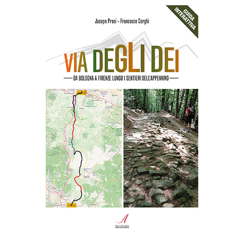 Questa guida interattiva racconta la via degli dei. Un percorso di Trekking che, attraversando l'Appennino, collega due città grandi ed affascinanti come Bologna e Firenze, dando la possibilità ai viandanti sia di visitare le città stesse, che soprattutto di godersi lo splendido cammino che le unisce. Immergersi nei boschi dell'Appennino Tosco-Emiliano è un'esperienza di contatto unico con la natura e con la multi millenaria storia dei percorsi che lo attraversano, a partire dalla via Flaminia Militare e quindi dai tempi degli antichi romani, passando attraverso il medioevo ed il granducato mediceo in Toscana, fino ai giorni nostri. Per non presentarsi al cammino impreparati, questo testo fornisce tutte le informazioni utili, racconta precisamente la strada da compiere con l'ausilio di mappe e testo ed insieme approfondisce ogni possibile dubbio o curiosità riguardo alla storia, cultura, tradizione di questi luoghi. La presenza di QR code lungo la guida permette di poter usufruire di supporti interattivi, quali tracce GPS e richiami a pagine web, per approfondire ulteriormente.