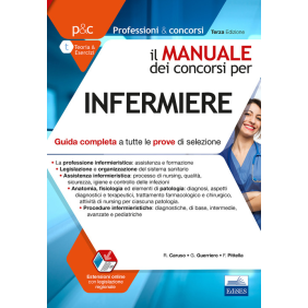 Il volume costituisce uno strumento di preparazione per quanti si apprestano a sostenere un concorso pubblico per infermiere. Il testo, interamente a colori, contiene una Introduzione dedicata alla professione e formazione infermieristica ed è suddiviso in quattro parti.La prima parte si occupa della legislazione e organizzazione del sistema sanitario.La seconda parte è dedicata all'assistenza infermieristica: processo di nursing, sicurezza del paziente, privacy e sicurezza sul lavoro, controllo delle infezioni e regole di igiene. La terza parte contiene le principali conoscenze scientifiche di base: una prima sezione, online, contiene elementi di biologia e genetica, nonché nozioni di chimica; una seconda sezione riguarda l'anatomia, fisiologia ed elementi di patologia (aspetti diagnostici e terapeutici, trattamento farmacologico e chirurgico, attività di nursing nel dettaglio). La quarta parte è dedicata alle procedure infermieristiche suddivise in diagnostiche, di base, intermedie, avanzate e pediatriche. Ciascun capitolo contiene test finali per verificare la comprensione e l'acquisizione delle nozioni e per fissare i concetti studiati.