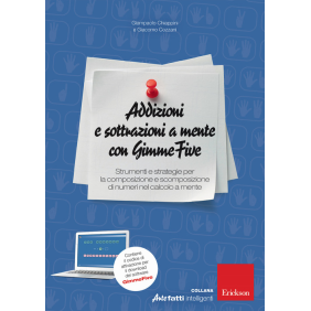 "Addizioni e sottrazioni a mente con GimmeFive" è composto da un volume operativo e un software (scaricabile con il codice di attivazione incluso nel libro) pensati per favorire lo sviluppo delle strategie sequenziali, di decomposizione e di compensazione che sono coinvolte nei calcoli mentali di addizioni e sottrazioni a più cifre. Il volume è articolato in due parti. Nella prima vengono presentate le difficoltà legate all'apprendimento del calcolo mentale e sono descritti gli ambienti e le funzionalità disponibili nel software a supporto del processo di apprendimento. La seconda parte riporta la proposta didattica che segue gli otto moduli presentati nel software e che è stata ampliata con attività da svolgere individualmente, a coppie o in gruppi cooperativi. Il programma didattico GimmeFive costituisce in tal senso una proposta educativa inclusiva per lo sviluppo di competenze nel calcolo mentale di addizioni e sottrazioni rivolta a tutti gli alunni della scuola primaria.