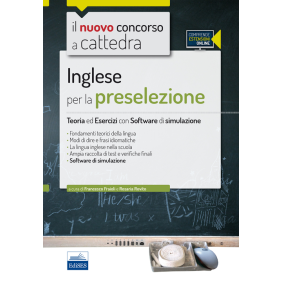 Il volume è rivolto ai candidati al concorso a cattedra per la preparazione al test preselettivo. Organizzato secondo i principi del Common European Framework of Reference for Languages (Quadro comune europeo di riferimento per le lingue) il volume si apre con un test d'ingresso che consente al lettore di saggiare il proprio livello di conoscenza. Il testo è diviso in tre parti. La prima parte contiene le nozioni teoriche (principali strutture morfosintattiche e funzioni linguistiche in linea con i principi del Quadro europeo comune di riferimento per le lingue) necessarie per affrontare i quesiti di lingua inglese previsti nella prova di preselezione al concorso. La seconda parte contiene una vasta raccolta di quiz a risposta multipla con soluzione e commento per favorire il ripasso e contribuire a fissare ulteriormente i concetti trattati. La terza parte contiene un glossario specifico e la relativa verifica finale per l'accertamento delle conoscenze lessicali. Il volume è completato da un software di simulazione accessibile online.