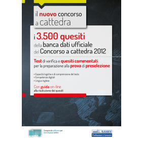 Finalizzato alla preparazione della prova preselettiva del concorso per l'accesso ai ruoli del personale docente della Scuola, il volume raccoglie, risolve e commenta i 3.500 quesiti della banca dati ufficiale della prova di preselezione del Concorso a cattedra 2012. Il testo riproduce, in 70 questionari da 50 quesiti ognuno, le stesse modalità di funzionamento del software che fu utilizzato nelle aule informatizzate destinate all'espletamento della prova preselettiva del Concorso a cattedra 2012. Per permettere ai candidati di conseguire una preparazione completa su tutti gli argomenti oggetto d'esame, i commenti alle soluzioni forniscono una descrizione delle tecniche, dei ragionamenti, dei passaggi logici e dei metodi più efficaci per risolvere correttamente i test e abituare la mente al ragionamento. Il manuale è arricchito da numerosi contenuti extra e materiali didattici, tra cui: il software di simulazione online (con i 3.500 quesiti della banca dati) che permette infinite esercitazioni e simulazioni della prova; una guida alla risoluzione dei quesiti della banca dati, scelti fra quelli a difficoltà più elevata e più rappresentativi di ciascuna tipologia.