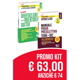 Il kit contiene i seguenti volumi: Le Nuove Avvertenze Generali Per Le Prove Metodologiche Didattiche. Per Tutte Le Classi Di Concorso A Cattedra 2020. Aggiornato Al DCPM Sul Coronavirus Questo volume presenta una completa e compiuta fusione di conoscenze e competenze, proprio quello che si chiede oggi alla nuova generazione di docenti che si preparano ad affrontare il Concorso a Cattedra. Concorso A Cattedra: Manuale Per La Seconda Prova Scritta Discipline Antropo-Psico-Pedagogiche, Metodologie E Tecniche Didattiche (24 CFU) Il volume contiene una trattazione completa ed esaustiva di tutti gli argomenti oggetto dei 24 CFU. Il manuale è diviso in quattro aree riguardanti: - competenze psicologiche - competenze antropologiche - competenze pedagogiche- competenze metodologiche - didattiche.