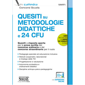 Le competenze didattiche sono considerate, al pari di quelle disciplinari, essenziali nello svolgimento dell'attività di insegnamento e pertanto sempre più spesso sono oggetto di verifica nelle prove concorsuali in cui gli aspiranti docenti sono chiamati a dimostrare non solo la padronanza delle discipline ma anche di possedere competenze pedagogiche, metodologiche e didattiche. Questo testo, in particolare, si rivolge a coloro che intendono prepararsi per la prova scritta del concorso ordinario nella scuola secondaria di primo e secondo grado, nonché del concorso straordinario per il ruolo. Per quest'ultimo concorso, infatti, è prevista una prova scritta consistente in quesiti a risposta aperta che riguardano le metodologie e tecnologie didattiche (oltre le competenze disciplinari e la comprensione della lingua inglese), mentre il concorso ordinario prevede una seconda prova scritta concernente le metodologie didattiche e le discipline antropo-psico-pedagogiche. Il testo offre, conformemente ai programmi, un'ampia selezione di quesiti svolti su tutti questi argomenti. Simulando le prove concorsuali, i quesiti sono stati formulati in varie tipologie e in modo da trattare anche argomenti diversi contestualmente, tuttavia, al fine di agevolare la consultazione e lo studio il testo è strutturato in due Parti: Parte I - Conoscenze e competenze didattico-metodologiche, rivolta alla trattazione e all'approfondimento degli elementi di base delle metodologie e delle tecnologie per la didattica, dalla progettazione alla valutazione, dalla individualizzazione alla personalizzazione dell'insegnamento, all'utilizzo delle TIC, ai principali metodi di insegnamento-apprendimento e alla normativa della didattica; Parte II - Conoscenze e competenze antropo-psico-pedagogiche, in cui si affrontano tematiche relative agli argomenti di base della pedagogia generale, interculturale e dell'inclusione, agli elementi di base del funzionamento psicologico, ai processi di sviluppo - cognitivi e affettivo-relazionali - coinvolti nel contesto scolastico, ai processi psicologici individuali e sociali implicati nel processo di insegnamento-apprendimento e agli elementi di base delle discipline antropologiche utili all'esercizio della professione. Alcuni esempi di didattica disciplinare e di quesiti in lingua inglese sono consultabili nelle espansioni online così come ulteriori materiali e approfondimenti. Per completare la preparazione si consigliano i manuali 526/B Manuale delle Metodologie e Tecnologie Didattiche e 526/CF Concorso a Cattedra Manuale per la Seconda Prova Scritta.